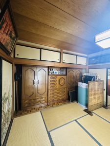 押入れも床を張り直し、壁にはアクセントにストライプ柄のクロスを貼りました。